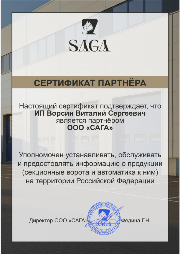 Мы - официальный дилер производителей Alutech, SAGA и DoorHan в Свердловской области. Продукция отвечает действующим техническим требованиям, что подтверждают сертификаты соответствия качества.